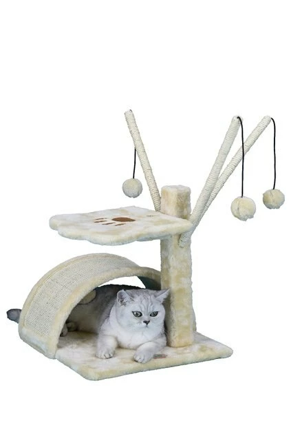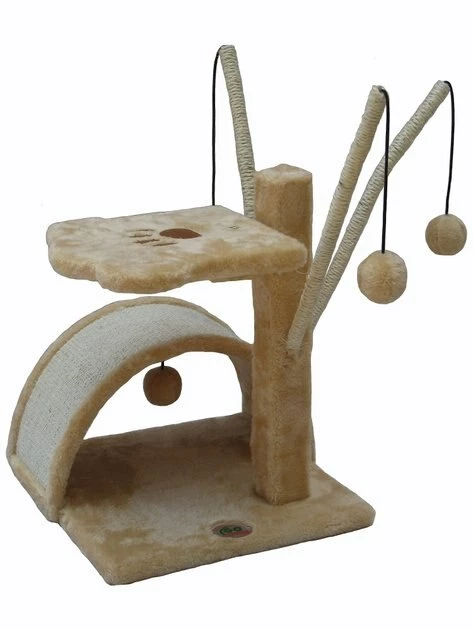 No cat can resist the interactive fun of the Go Pet Club 22-in Cat Tree Condo & Scratching Pad. Crafted with durable pressed wood and finished with a soft faux-fur, this tree is destined to be your feline friendβs favorite spot in the house. The tree includes a curved ramp that doubles as a scratching surface for claws and a private hideaway when your girl wants some alone time. Hanging ball toys provide engaging activity while the top perch offers a comfortable place to lounge because sometimes your pal needs to supervise her world!