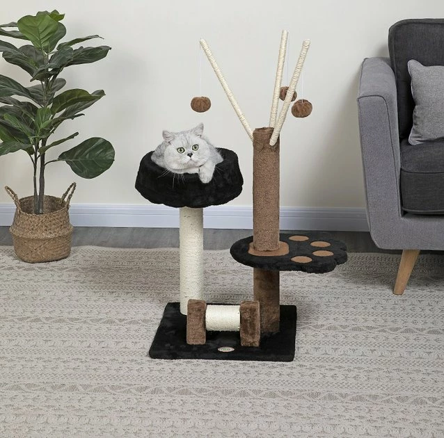 When your furry friend is feeling playful, heβll love to visit his Go Pet Club 32-in Cat Tree Perch with Dangling Toys. This tree is covered in a soft faux-fur and features everything your kitty needs to have fun! Two sisal rope-wrapped posts are designed to encourage your catβs natural scratching habits while the three hanging balls engage his love for swatting and batting. A paw-print platform is an adorable spot for perching and the top bed provides comfort and support for whenever your boy needs a nap!