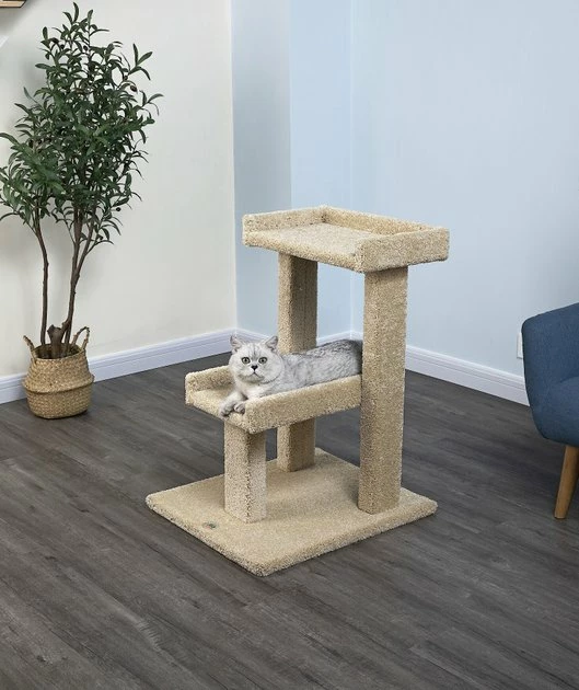 Take your furry friendβs love for perching to the next level with the Go Pet Club 32-in Premium Carpeted Post Cat Tree. This durably designed tree is covered in a soft carpet material thatβs comfortable for your cat and easy for you to clean! Two generously sized surfaces are purr-fect for sitting, spying and observing, allowing your best bud to keep an eye on her home. The platforms come with raised edges to offer support when your pal is resting and relaxing!