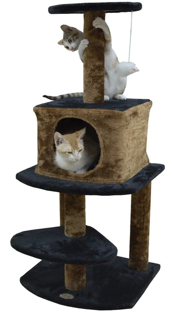 Keep your cat paw-fectly cozy and comfortable in the Go Pet Club 40-inch Kitten Cat Tree Condo. Sheβll love scratching, climbing and playing all over this unique cat home. Constructed using a durable, compressed wood, itβs built to last! Itβs covered with a faux fur finish thatβs warm, cozy and makes for lots of purr-fect places to cuddle up for a cat nap. After all, sheβll be tuckered out from expending her feline energy climbing around the multiple perches and clawing at the scratching posts. Assembly couldnβt be easier, with step-by-step instructions and all the tools you need included.