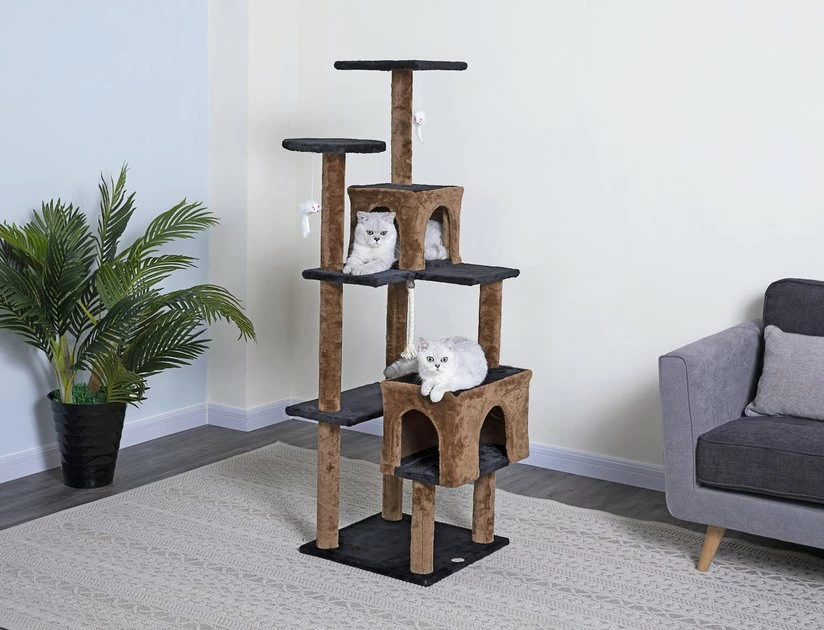 - With 2 condo houses to choose from, she’ll always have a quiet place to cuddle up.