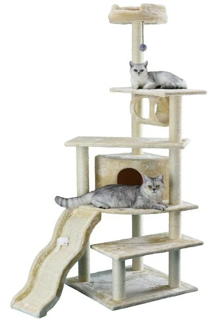 The Go Pet Club 70-in Faux Fur Cat Tree & Condo is just what your feline friend needs to occupy her mind and body. The highlight of this tree is paw-sitively the sisal slide—it doubles as an adorable decoration and surface for your cat to scratch her nails on. Furnished in a soft faux-fur material, the oasis is purr-fect for snuggling, cuddling and snoozing. A private condo escape offers your best bud the privacy and security she needs to nap in peace while the elevated platforms and tunnel give her ample opportunities for perching and observing. The dangly toy mouse will engage her natural hunting instincts for swatting and batting fun you’ll love to watch!