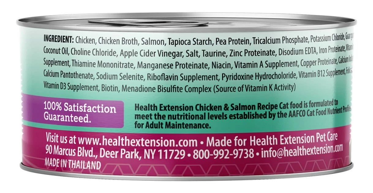 The Health Extension Variety Pack Grain-Free Canned Cat Food includes all of your kitty’s fur-avorite flavors for paw-somely exciting meals. Health Extension food includes real tilapia, tuna, chicken, salmon, prawns and chicken for natural, tasty goodness. In addition to wholesome proteins, added coconut oil and apple cider vinegar support your cat’s health. This food also provides essential moisture to help keep your furbaby hydrated and promote urinary tract health. While this food is packed full of pure, good ingredients, it’s free of stuff like by-products, grains, soy, glutens, added sugars and artificial colors or flavors. With four delicious flavors to choose from, mealtime just got a whole lot more exciting for your feline friend!