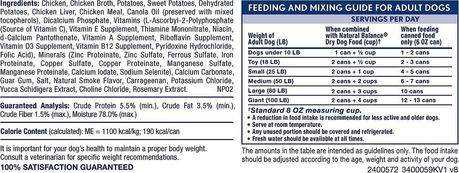 Natural Balance L.I.D. Limited Ingredient Diets Chicken & Sweet Potato Formula + Duck & Potato Formula Canned Dog Food are grain-free formulas that combine one protein and one carbohydrate to give pups with sensitive stomachs or food-related allergies all the nutrition they need in a tasty, well balanced meal. Whether you serve country-fresh chicken and sweet potato recipe or the drool-worthy duck and potato, your furry friend will love these easy-to-digest, flavorful feasts!