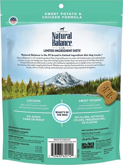 - This duo includes Natural Balance L.I.D. Limited Ingredient Diets Chicken & Sweet Potato Formula Dry Dog Food and Natural Balance L.I.T. Limited Ingredient Grain-Free Treats Sweet Potato & Chicken Formula Dog Treats.