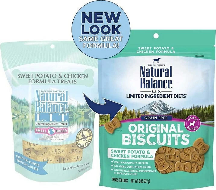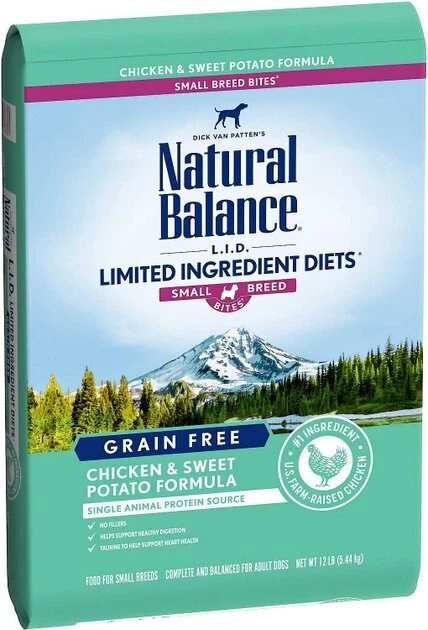 - This duo includes Natural Balance L.I.D. Limited Ingredient Diets Small Breed Bites Grain-Free Chicken & Sweet Potato Formula Dry Dog Food and Natural Balance L.I.T. Limited Ingredient Grain-Free Treats Sweet Potato & Chicken Formula Dog Treats.