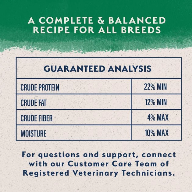 - Formulated with a simplified list of premium ingredientsโa single animal protein source, healthy grains and no soy, gluten, artificial colors or flavors.