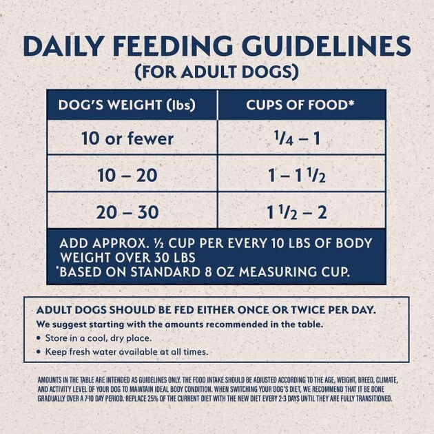 Adult dogs should be fed either once or twice per day. When you first start feeding Natural Balanceยฎ L.I.D. Limited Ingredient Dietsยฎ Duck & Potato Formula Small Breed Bitesยฎ Adult Dog Food, we suggest starting with the amounts recommended in the table. Energy requirements vary with environmental conditions, temperature and activity of your dog. The amount of food should always be adjusted to suit your dog’s needs.