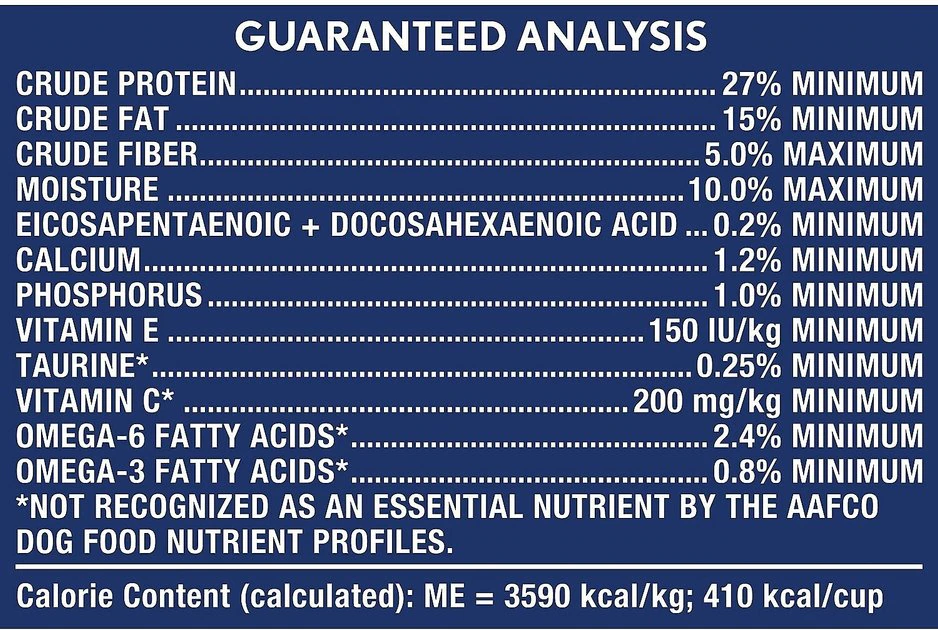 *Not recognized as an essential nutrient by the aafco dog food nutrient profiles.